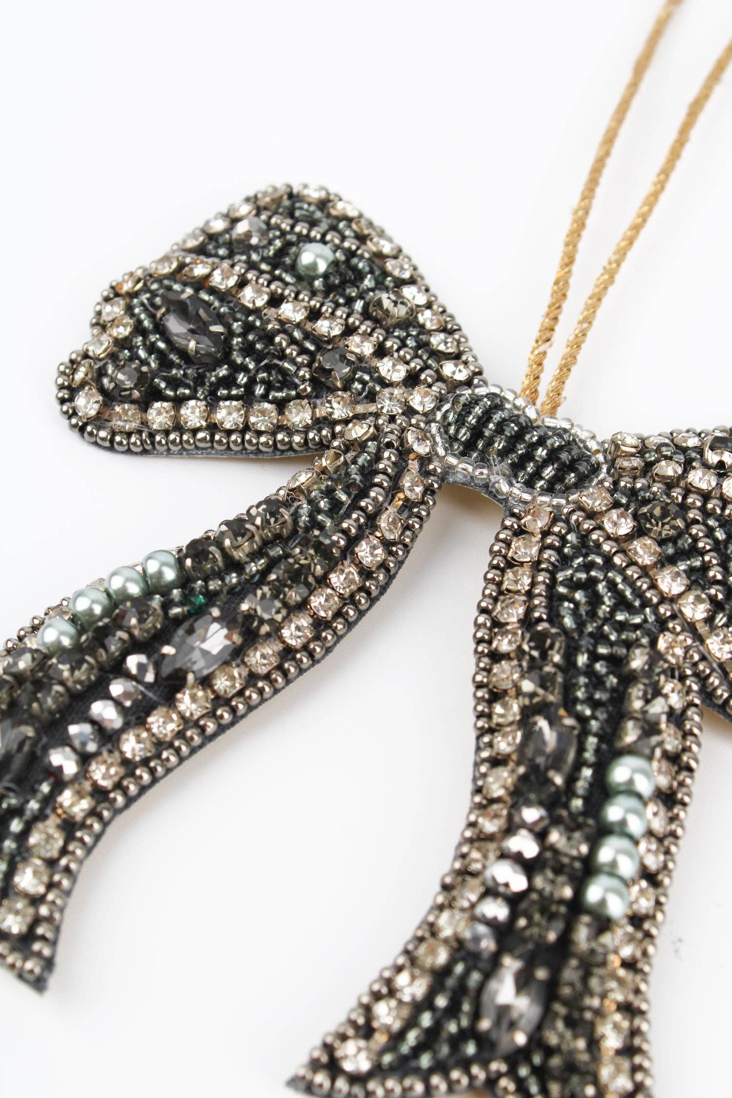 Une touche festive pour la maison. Perlé à la main en Inde par des artisans talentueux. Fabriqué avec des perles de verre et fini avec un dos doré. Dimensions d'environ 95 mm de long et 90 mm de large avec un fil doré de 100 mm pour suspendre.