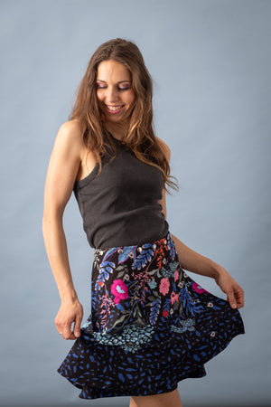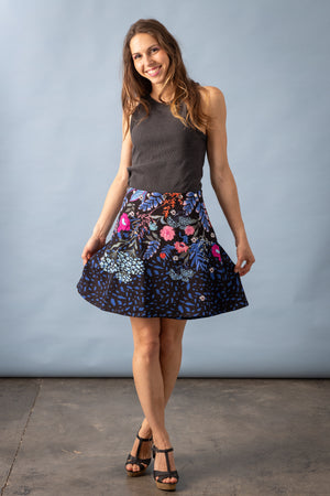 Jupe multi-taille forme trapèze en crêpe imprimé. Elle se règle à la taille par des boutons pressions pour s’adapter du 36 au 40-42. Un incontournable de la marque Anatopik, cette jupe plait autant pour sa coupe que pour son côté pratique et original. C’est LA jupe idéale pour faire plaisir et se faire plaisir, sans se tromper !