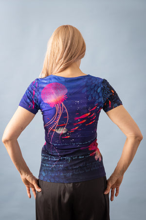 Inspiré du modèle SAXO, ce tee-shirt est avec des manches courte en viscose élasthanne tout imprimé à l’encolure carrée. Sa coupe ajustée apporte de la féminité à la silhouette dans le confort du jersey viscose .