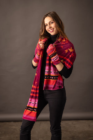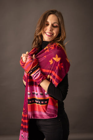 C'est l'accessoire indispensable de l'hiver qui vous protège des coups de froid en habillant votre cou de couleurs éclatantes. Tout en velours brillant imprimé sur le recto et le verso, cette écharpe mesure 190cm x 35 cm.