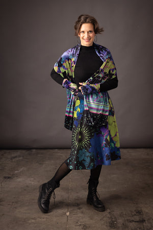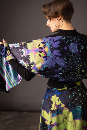 C'est l'accessoire indispensable de l'hiver qui vous protège des coups de froid en habillant votre cou de couleurs éclatantes. Tout en velours brillant imprimé sur le recto et le verso, cette écharpe mesure 190cm x 35 cm.
