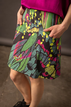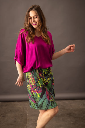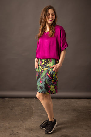 Vous pourrez la porter avec un de nos unis assortis ou encore avec un petit pull uni d'une couleur assortie au motif.