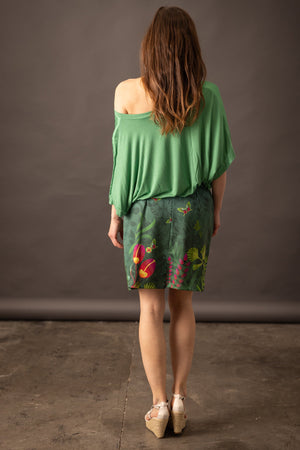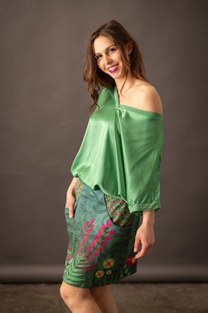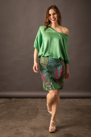 Vous pourrez la porter avec un de nos unis assortis ou encore avec un petit pull uni d'une couleur assortie au motif.