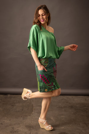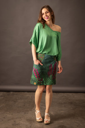 Cette jupe droite en maille est agrémentée de poches, elle saura convaincre toutes les morphologies grâce à sa matière extensible.