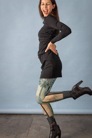 Legging tout imprimé à large ceinture pour plus de confort et éviter une démarcation à la taille. Matière effet «seconde peau».