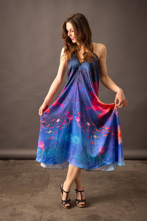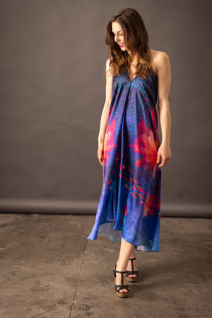 Laissez vous séduire par cette ravissante robe décolletée en soie véritable.Elle est dotée d'un dos nu très féminin et d'un élégant drapé qui sera à la fois pratique et joli pour sublimer votre silhouette. La sensation de légèreté et de fluidité du satin de soie rend cette robe idéale pour toutes vos fêtes estivales.