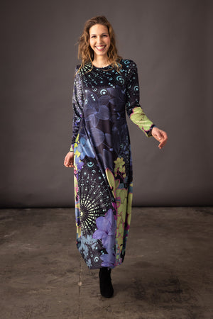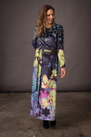Associez style et confort avec cette magnifique robe longue évasée . On aime sa maille velours très douce qui donne de l'éclat et de la brillance aux couleurs. Souple et très agréable à porter, cette robe vous accompagnera tout au long de la saison avec une veste en cuir pour un style plus rock ou un gilet grosse maille pour un esprit cocooning. Vous pouvez aussi ajouter une ceinture uni ou notre ceinture imprimée PAGODE assortie pour souligner la taille .
