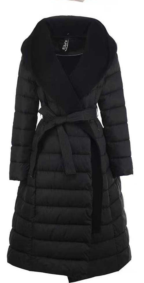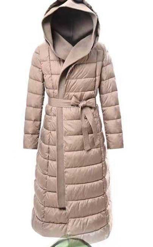 Doudoune longue avec large capuche . Poches à zip . CEINTURE