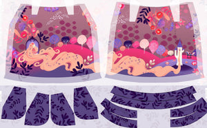 Let your creativity speak. This is the satin for making NICKY multi-size skirts and OXINA, NAOMI and TABATA dresses. The placement is intended for a skirt with a front on the left and a back positioned head to tail on the right. In the lower part, you have a matching ALL OVER pattern to make the shapes or other details that you want for your creation. You can also make a dress because the height is 90 cm.