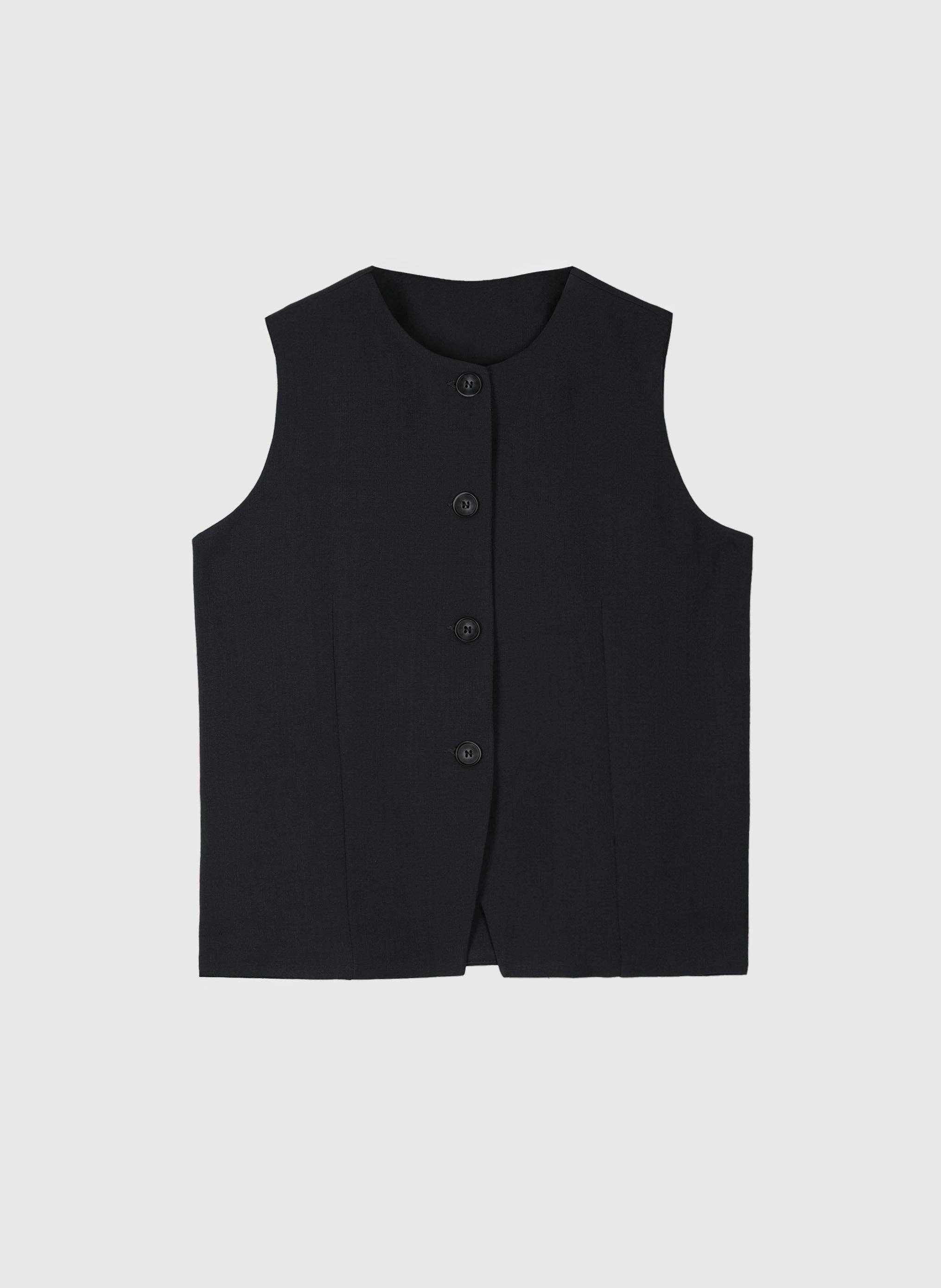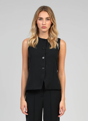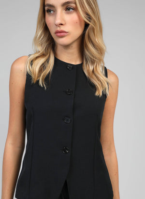 * Veste tailleur * Col rond * Sans manches * Tissu uni * Coupe appuyée * A associer avec une tenue décontractée pour un style chic et sans effort * Longueur standard * Pinces devant * Longueur totale 56cm