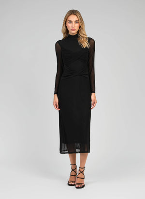 Robe midi noire au style moderne et raffiné