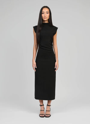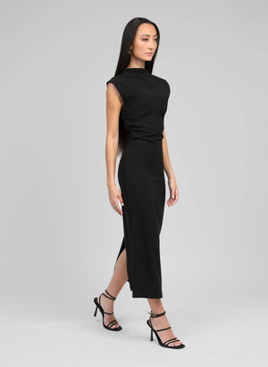 * Col montant * Sans manches * Coupe ajustée * A adopter pour un style glamour et féminin * Longueur midi * Fronces cotés et épaules * Longueur totale 125cm
