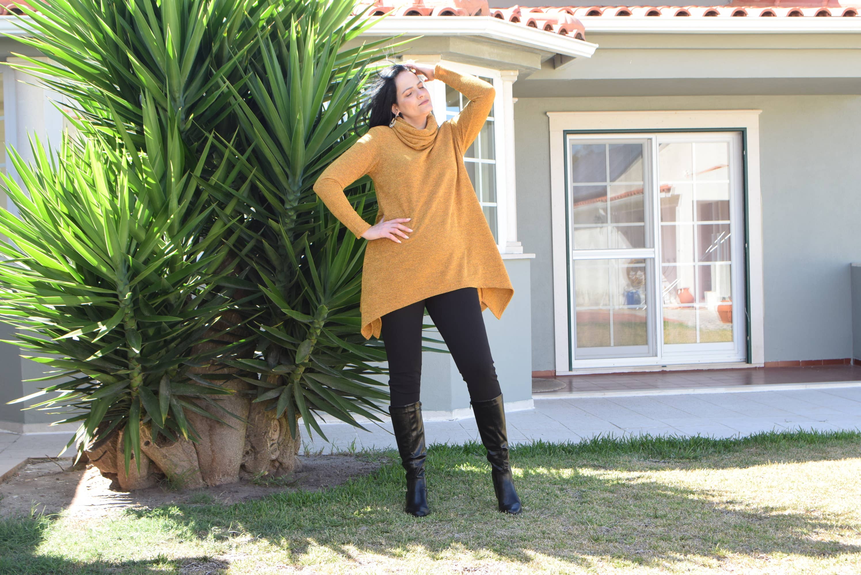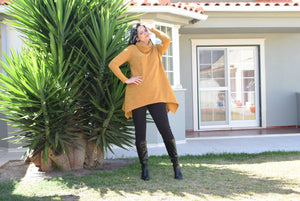 Conçu pour célébrer la diversité, « Olivia » est disponible dans les tailles L à 6XL, afin que chaque femme trouve la coupe parfaite. Les longs bras de la tunique apportent confort et élégance, tandis que le style asymétrique avec découpes latérales ajoute une touche contemporaine à votre tenue.